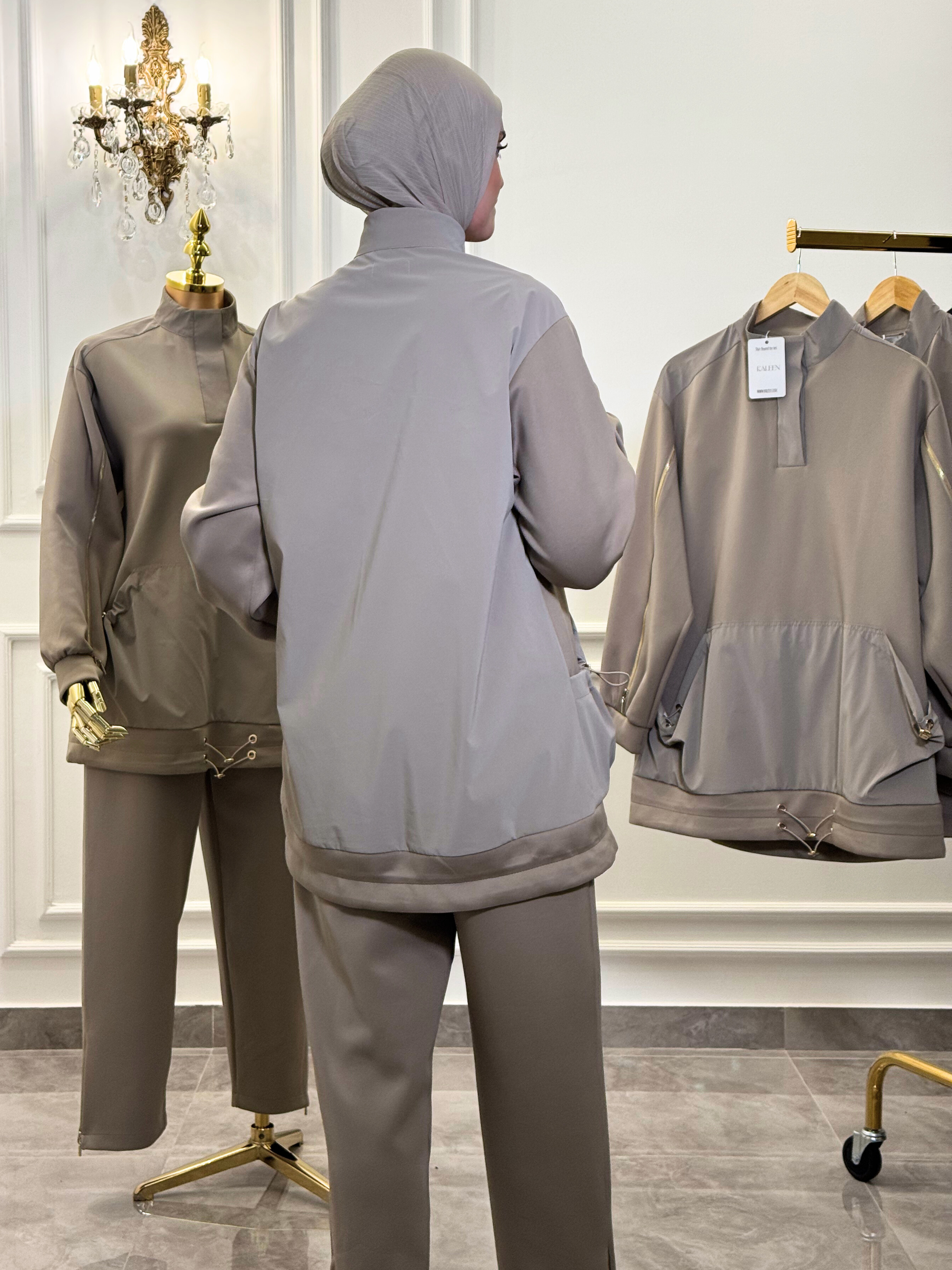 Designed for women who move with confidence, the Urban Modest Tech Set blends modern functionality with elevated minimal style. This two-piece set features a relaxed tunic top paired with straight-leg pants, offering a polished yet comfortable look for everyday wear.