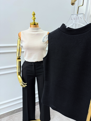 Basic Ribbed Body Shirt – Mock Neck – Black